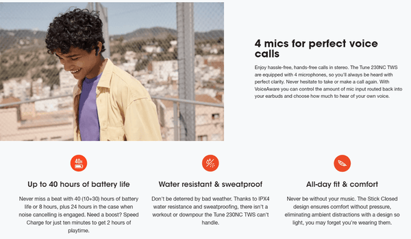 Connect calls simply and seamlessly with 4 mics that cancel out ambient noises offering perfect calls anywhere. And with Active Noise Cancelling and Smart Ambient technology, you choose whether you want to tune out the world or engage with your surroundings.