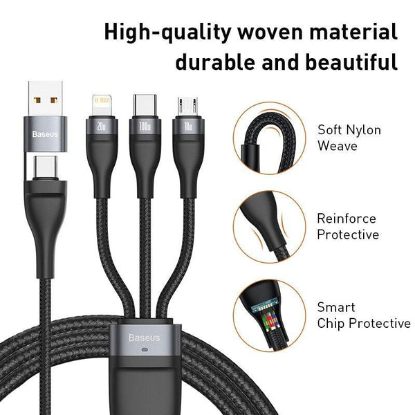 Life is too short to live without the Baseus 1.2M 100W 3 in 1 USB/Type C QC4.0 Charging Cable. Be happy. Be Content. Be Satisfied.