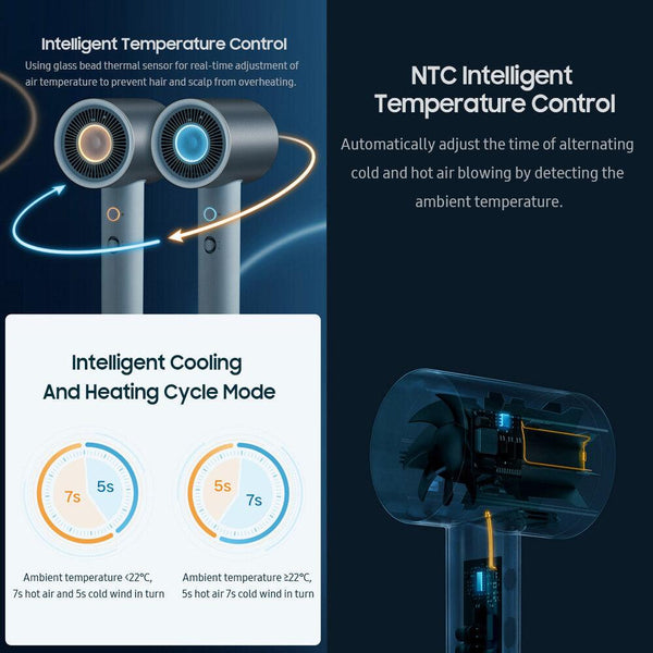 3 Wind Temperatures & 2 Wind Speeds - Intelligent temperature control prevents hair and scalp from overheating, and the two-tone LED indicator reminds the wind temperature at a glance.