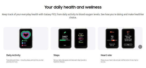 The Samsung Galaxy Fit 3 Smart Watch was built with people like you in mind. Something to keep you happy. Every. Single. Day.