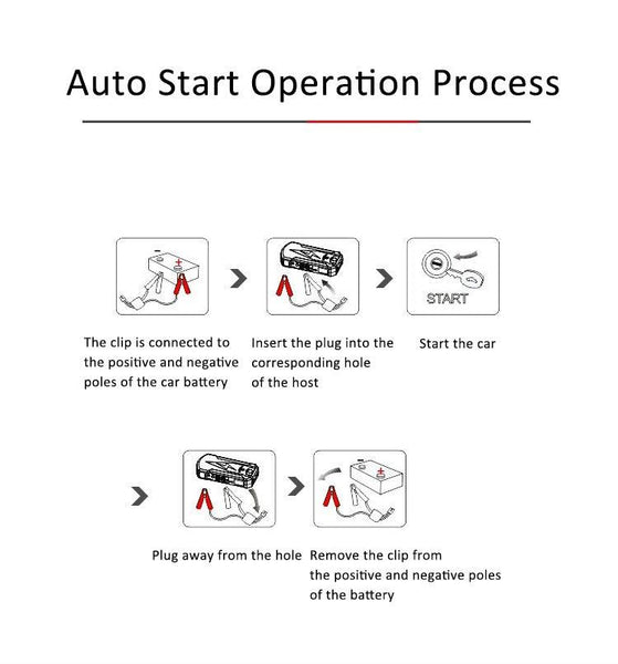 4. It supports vehicles with 12V voltage or more, to start your car, firstly you should connect the power bank with the battery holder and then connect the negative and positive connectors of the holder with your car battery.