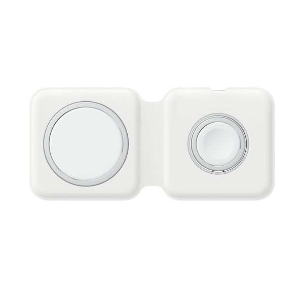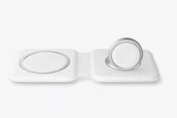 The MagSafe Duo Charger conveniently charges your compatible iPhone, Apple Watch, Wireless Charging Case for AirPods and other Qi-certified devices. Just place your devices on the charger and a steady, efficient charge begins on contact. The charger folds together neatly so you can easily take it with you wherever you go.