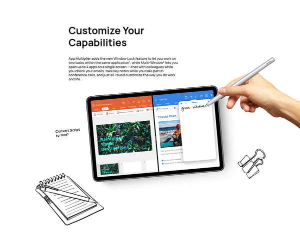 【Multi-Window】Multiply your possibilities with the Multi-Window feature on HUAWEI MatePad 11. Open up to 4 apps on a single screen, and just all-round customize the way you do work and life.