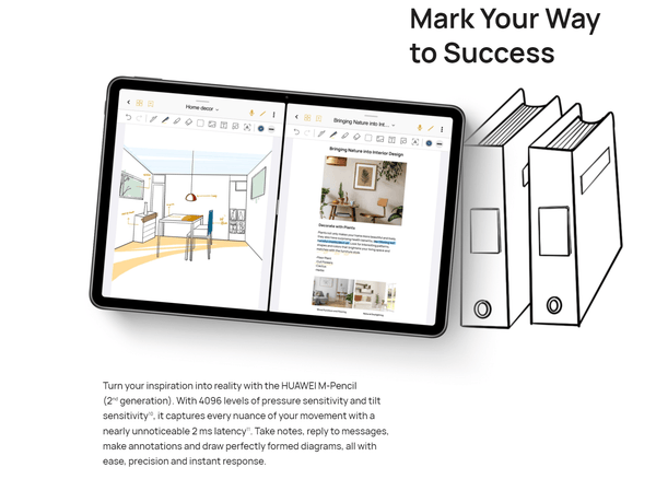 【Huawei Share】Work on two projects simultaneously, and easily drag-and-drop files between screens. Alternatively, mirror your laptop screen to MatePad, and use HUAWEI M-Pencil to get full creative control of your design projects.