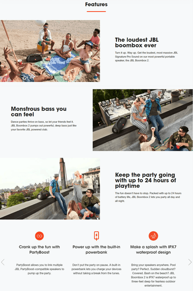 The fun doesn't have to stop. Packed with up to 24 hours of battery life, JBL Boombox 2 lets you party all day and all night.