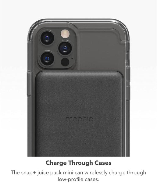 The snap+ juice pack mini wirelessly charges most iPhone 13/12 series phones and Qi-enabled devices. †