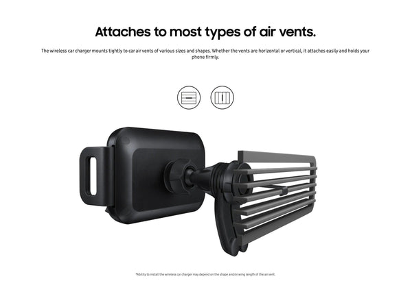 The 9W Wireless Car Charger supports Samsung Galaxy Devices, and up to 7.5W for iPhones.