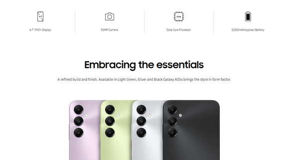 Life is too short to live without the Samsung Galaxy A05S (4/128GB). Be happy. Be Content. Be Satisfied.