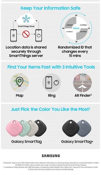 * For Galaxy SmartTag+, Samsung account log-in and registration on SmartThings Find is required.