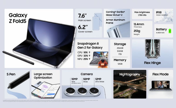 Every product is unique, just like you. If you're looking for a product that fits the mold of your life, the Samsung Galaxy Z Fold 5 (12/1TB) is for you.
