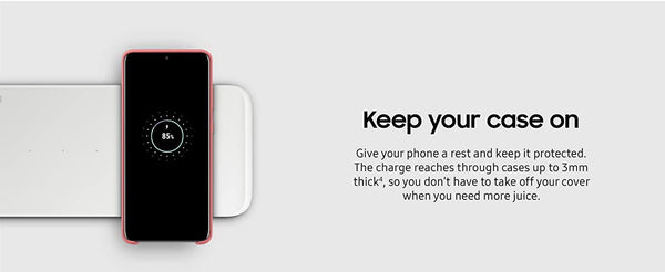 *Charging tests were conducted only with Samsung cases.*Thick cases may cause wattage to drop and produce heat, resulting in longer charging times.*Charging time may vary by charging conditions and case materials.