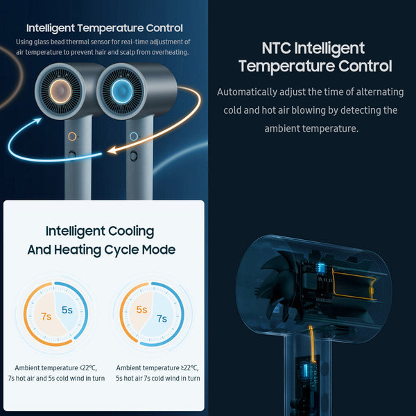 3 Wind Temperatures & 2 Wind Speeds - Intelligent temperature control prevents hair and scalp from overheating, and the two-tone LED indicator reminds the wind temperature at a glance.
